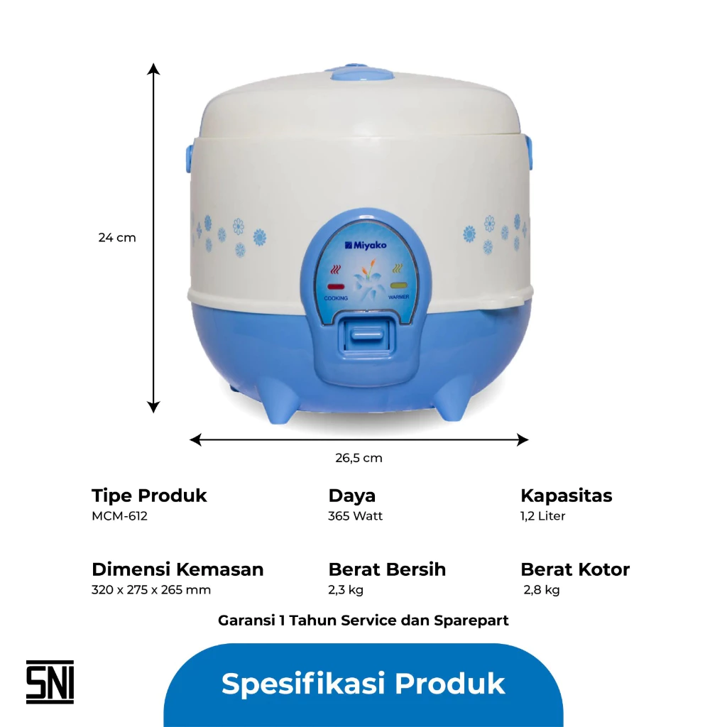 magic com miyako mcm612 rice cooker3 in 1 magic warmer plus 1.2 liter garansi resmi originalMagic Com Miyako MCM612 Rice Cooker3 in 1 – Magic Warmer Plus 1.2 liter Garansi Resmi Original