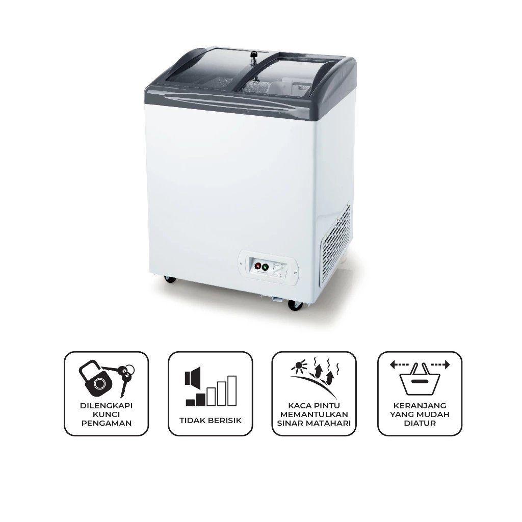 Dilengkapi kunci pengaman untuk menjaga isi freezer lebih aman