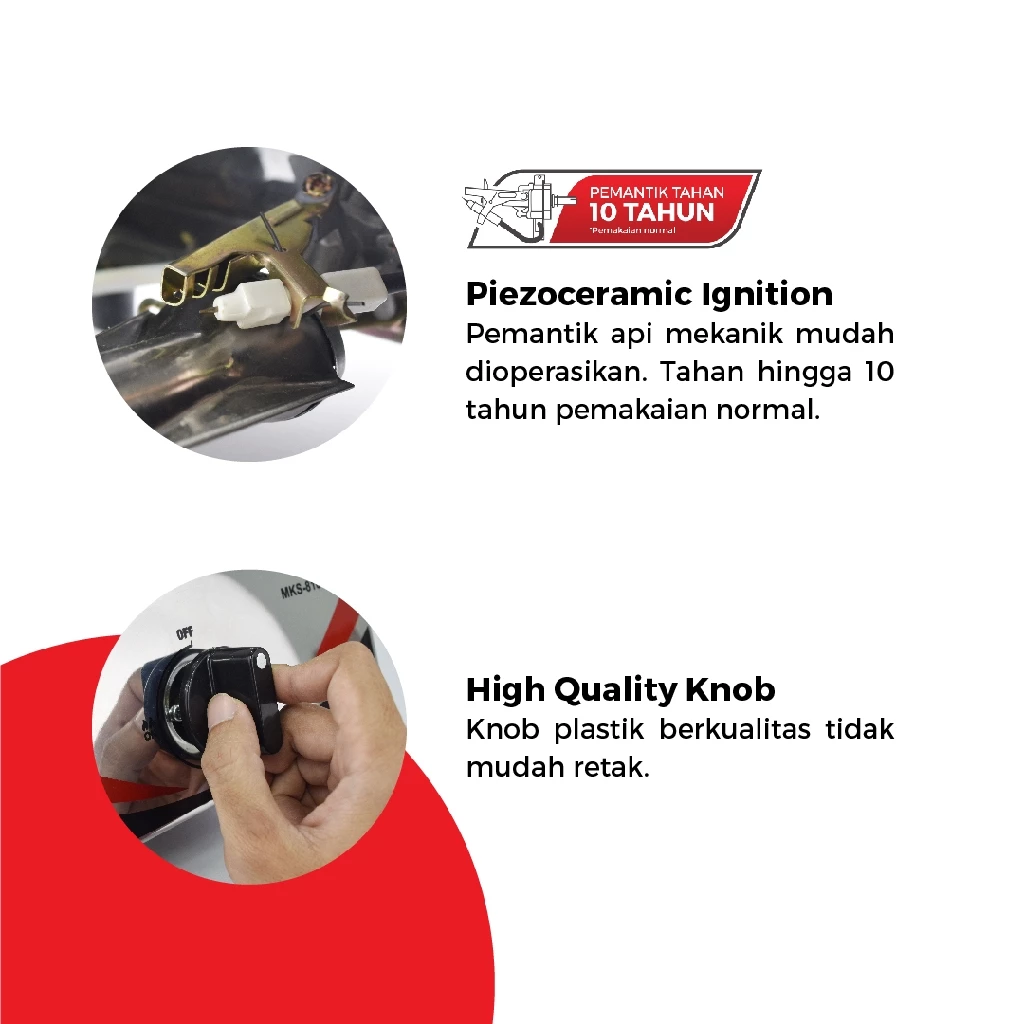 Kompor gas dengan Smart Burn Technology → hemat gas hingga 30% & panas 30% lebih cepat