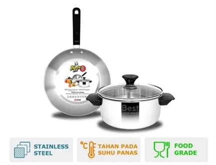 Wajan berbahan stainless steel berkualitas, cocok untuk menumis atau menggoreng porsi kecil. Aman digunakan pada kompor induksi, listrik, dan gas, mudah dibersihkan, serta tidak mudah lengket.