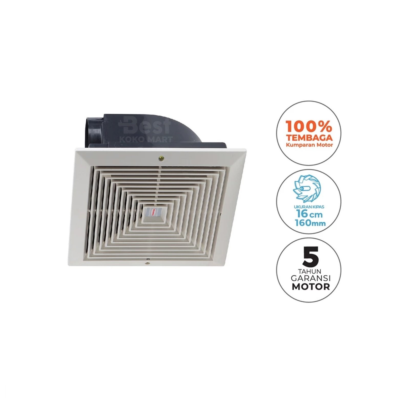 Maspion Ventilating Fan MV-16EX berfungsi untuk menghisap udara dari dalam ruangan ke luar sehingga udara di dalam ruangan menjadi lebih sejuk dan bersih. Dilengkapi motor yang kuat, Thermofuse protection, serta sistem pelumasan otomatis untuk menjaga performa motor tetap optimal. Konsumsi listrik hemat dan suara operasi halus.