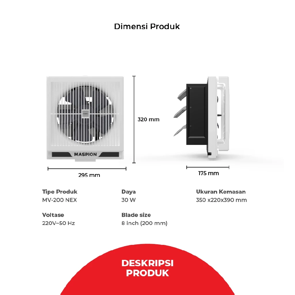 Maspion Ventilating Exhaust Fan Kipas Ventilasi 8 Inch MV-200 NEX Garansi Resmi Original