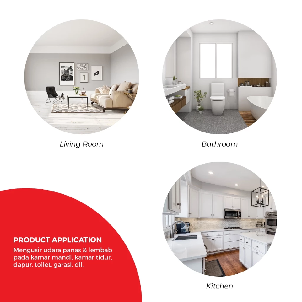 Ciptakan udara di dalam rumah yang lebih bersih dan segar. Udara panas, lembap, dan kotor akan tersedot keluar dan digantikan dengan udara bersih, sehingga sirkulasi udara di dalam ruangan tetap terjaga untuk lingkungan yang lebih sehat.