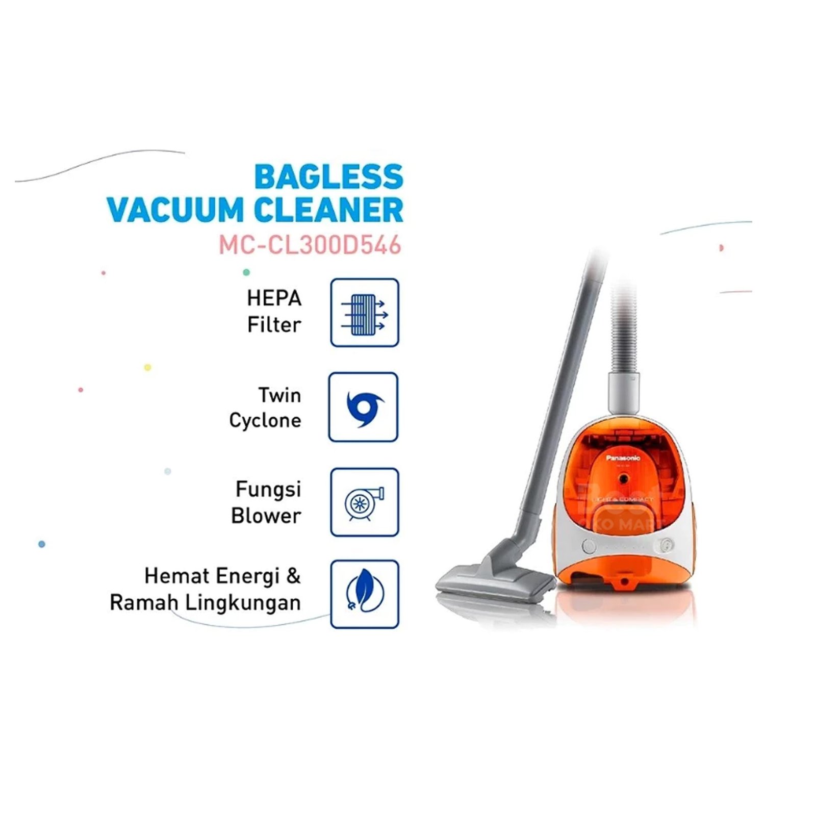 panasonic mc cl300d546 bagless vacuum cleaner [3 kg] orange garansi resmi originalPanasonic MC-CL300D546 Bagless Vacuum Cleaner [3 Kg] – Orange Garansi Resmi Original