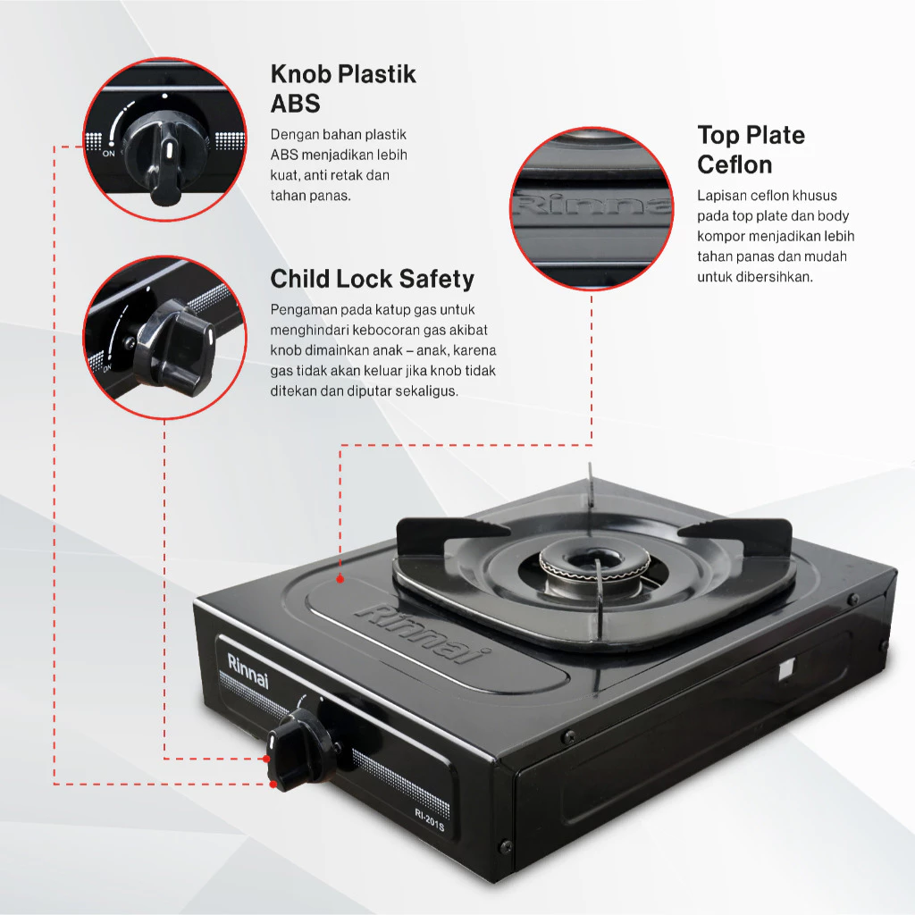 Deskripsi Produk – Kompor Gas Rinnai RI-201S (1 Tungku)