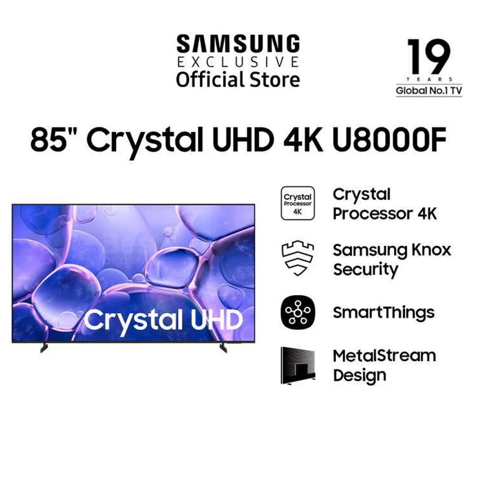 Samsung 85″ Crystal UHD 4K U8000F Smart TV | Crystal Processor 4K | SmartThings | UA85U8000FKXXD Garansi Resmi Original