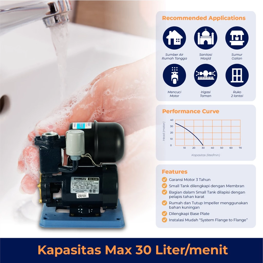 Dilengkapi Small Pressure Tank untuk menjaga tekanan air tetap stabil